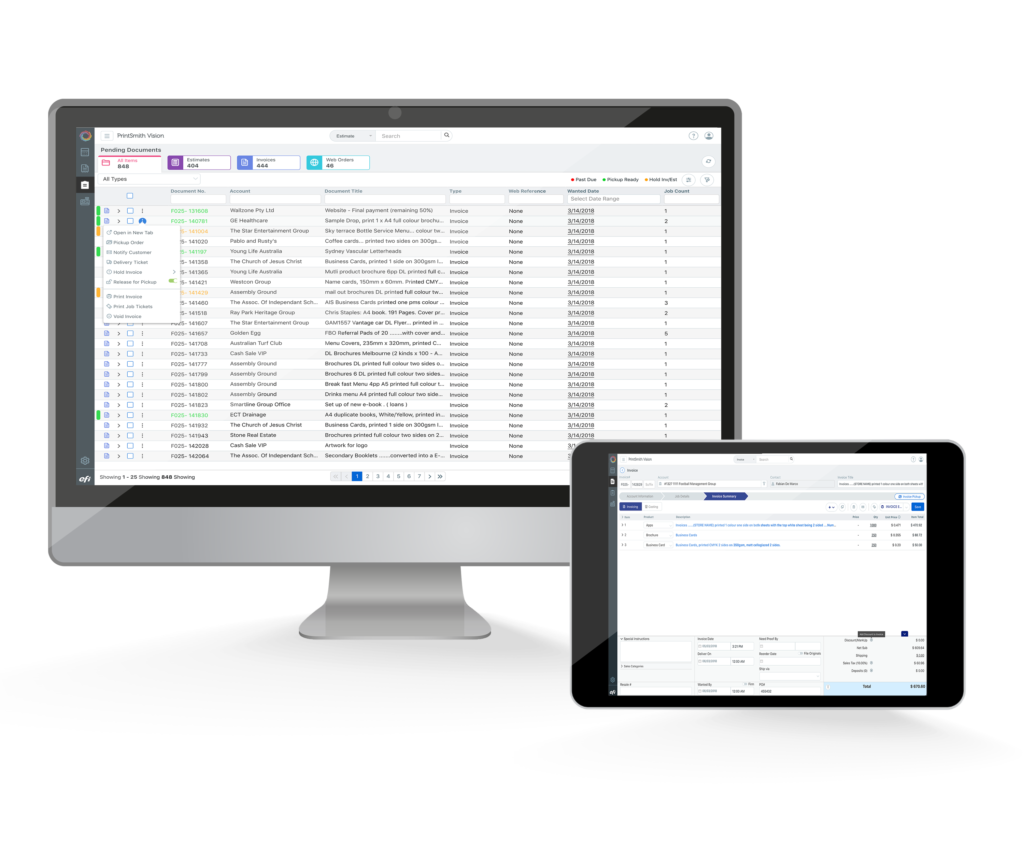 PrintSmith™ Vision is a browser-based print management system for commercial printers, trade printers, copy shops, and quick printers. To help you run your business efficiently and profitably, PrintSmith Vision combines powerful estimating, invoicing, billing, point of sale, and accounts receivable in a single product. PrintSmith Vision supports commercial printers, trade printers, copy shops, and quick printers.